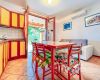 Each two-storey cottage has a living room with sofa bed on the ground floor, alongside a kitchenette equipped with gas hobs, a large refrigerator, air conditioning, washing machine and TV. On the first floor, there are two bedrooms, one with a double bed and the other ideal for children with bunk beds, as well as a bathroom with a shower cubicle. Outside, each house has a large porch with garden table and chairs. The communal garden has children's games and is surrounded by covered terraces. The location of the cottages is ideal for those wishing to explore the area: the beach is 950 metres away, with a dog beach 1500 metres away. For daily necessities, a grocery shop is conveniently located 200 metres away. The private parking area is located along the perimeter of the garden.