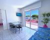 Type LOUNGE: two-rooms-flat with livingroom with kitchen corner and folding-bed, bedroom with double-bed and 2 separated beds, WC/bathroom with shower-box and bidet, balcony. It disposes of reinforced-door, electric-venetian-blinds, microwave oven, fridge, safe, LCD sat-TV, air conditioning, washing-machine, dish-washer, free WiFi, 1 parking-place.