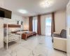 Nuovissimo appartamento climatizzato a due passi dal centro pedonale di Bibione Spiaggia. Una location ideale per coppie, piccoli gruppi o nuclei famigliari (max 4). Adatta a “soggiorni lampo” per chi ama concedersi un week end improvvisato al mare, ma anche a coloro che organizzano le vacanze in anticipo, trascorrendovi un periodo medio lungo. Il portoncino blindato d’ingresso invita ad entrate all’interno di un open space moderno e luminoso, arredato con materiali eco, prediligendo una gamma di colori tenui e freschi. La parte giorno accoglie un grazioso living con divano letto doppio e l' angolo cottura perfettamente attrezzato. Sono presenti elettrodomestici quali: frigorifero con cella freezer separata, il forno ventilato, il microonde, il bollitore dell’acqua, tutti gli utensili e la classica moka all'italiana per un espresso perfetto. La parte notte cambia in base alla tipologia di appartamento. Le unità laterali con i terrazzi ad angolo, dispongono del letto matrimoniale più un singolo aggiunto. Gli appartamenti di mezzo, invece, al matrimoniale affiancano un letto a castello. Il bagno finestrato è eccezionalmente grande, sempre in tutte le varianti, con comoda cabina doccia. A disposizione degli ospiti connessione Wi-Fi illimitata, posto auto standard nell'area condominiale l'accesso h24 al locale lavanderia del piano terra, fronte ascensore.