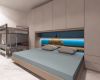 Suite ELITE Esclusiva unità bilocale composta da soggiorno con angolo cottura e divano letto, camera con letto matrimoniale e letto a castello, servizio con box doccia e bidet, ampia terrazza con tavolo e sedie da esterno. Dispone di piano cottura a induzione, forno a microonde, frigorifero con cella congelatore, lavastoviglie, LCD sat-TV, cassaforte, aria condizionata, lavatrice, connessione internet WiFi, un posto auto in struttura.