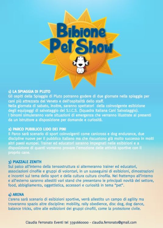 Bibione Pet Show sarà aperto dalle 10:00 alle 17:00 entrambi i giorni, con ingresso gratuito e aperto a tutti.