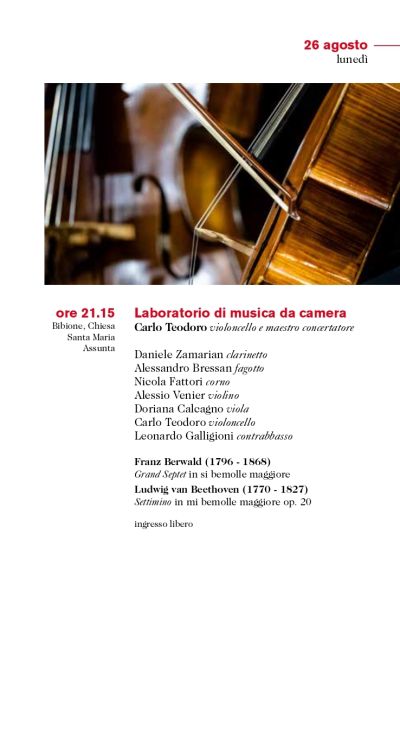 An evening dedicated to the chamber music workshop with the Portogruaro Ensemble and with the participation of the cellist Carlo Teodoro.