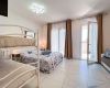 Внутренне все квартиры устроены следующим образом: Проходя через бронированную дверь мы попадаем в open space, где доминирует современный стиль из экологических материалов в светлых тонах. Здесь расположена просторная гостиная с двуспальным диваном-кроватью и обеденная зона на 4-6 человек с кухней. Последняя, укомплектована всей бытовой техникой, включая большой холодильник с отдельной морозильной камерой, духовой, микроволновой печью, чайником и в целом всем необходимым для приготовления пищи. Спанальная зона включает в себя двухспальную кровать двухъярусную кровать предоставляя от4 до 6 спольных мест. Ванная комната исключительного большая, помимо наличия всей сантехники она может похвастаться великолепной естественно затемненной дверью. Элегантное жилье в 500-х от моря в Бибионе, этот идеальное решение для семей состоящих из двух взрослых и двух или трёх детей, и представляет собой оптимальные условия для отдыха на море, не отказываясь от домашнего комфорта.