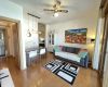 Terraced house in a village surrounded by greenery with a swimming pool, 500 meters from the sea, a private garden, and two uncovered parking spaces. Access to the private, fenced garden, living room with double sofa bed, and fully equipped kitchen. A double bedroom with private bathroom and a bedroom with two single beds are also included. The second bathroom is located in the hallway and features a shower. Air conditioning, a TV, and a washing machine complete the package. Ideal for families with children.