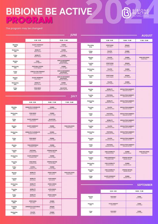 From 10 June to 6 September for three days a week you can take part in numerous lessons within the summer event "Bibione Be Active".